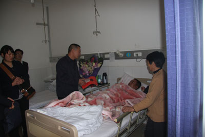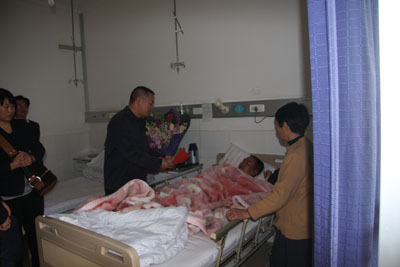 2010年3月9日中午,特安吶集團公司副總裁向昌萬、總裁助理鄭傳云及工會、黨支部、辦公室等有關部門人員,帶著公司與廣大干部職工的關心和厚愛,前往文山州人民醫(yī)院腫瘤內科,看望住院治療的李曉光,轉達了公司職工的關愛之心、牽掛之情,并送去了公司員工捐款共計22320元。當李曉光的母親接過兩萬多元捐款時,李曉光及在場的家人熱淚盈眶,感激之情難以言表。