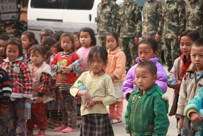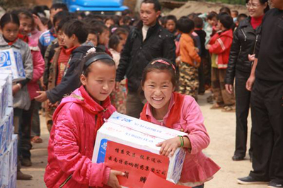 災區(qū)古木鎮(zhèn)紅石洞小學接受公司捐贈100件礦泉水