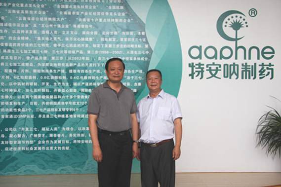 來(lái)訪領(lǐng)導(dǎo)與唐董事長(zhǎng)深切的交流,了解公司產(chǎn)品銷售概況,了解三七使用方法,并與唐董事長(zhǎng)合影留念。