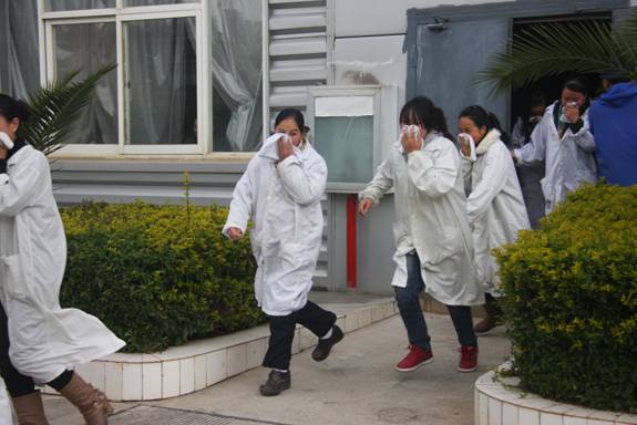 2011年12月17日上午,特安吶公司2011年度消防演練拉開帷幕,首先進行的是第一科目:應(yīng)急救護培訓(xùn),文山州紅十字會老師講授了應(yīng)急救護方面非常實用的現(xiàn)場急救知識,并現(xiàn)場互動,向員工示范了心肺復(fù)蘇、人工呼吸、八種包扎法等急救手法,獲得了員工熱烈的掌聲。9時50分,隨著一聲刺耳的警報拉響,第二科目應(yīng)急疏散拉開序幕,只見大家紛紛用口罩、毛巾捂住口鼻,從辦公室、車間有序疏散到安全地帶,整個過程僅用時10分鐘。指揮部馬上下達第三科目:傷員救護演練。各部門、車間開始清點人數(shù),發(fā)現(xiàn)提取車間有10人被濃煙困于車間內(nèi),剎那間,制劑車間28名救護隊員如離弦的箭一般沖向提取車間,不一會兒,救護隊員就抬著、攙扶著傷員出來了,傷員們有的頭上纏繞著繃帶,有的手上包扎著止血帶,大家迅速把傷員們送到了安全地帶。緊接著,分裝車間、行政管理人員也進行了傷員救護演練。最后,第四科目火災(zāi)撲滅演練開始了,只見濃煙滾滾,烈焰升騰,義務(wù)消防隊員們提起滅火器,對準烈火一陣掃射,火魔被撲滅了………11時,預(yù)定的消防演練科目全部結(jié)束,本次演練圓滿成功。