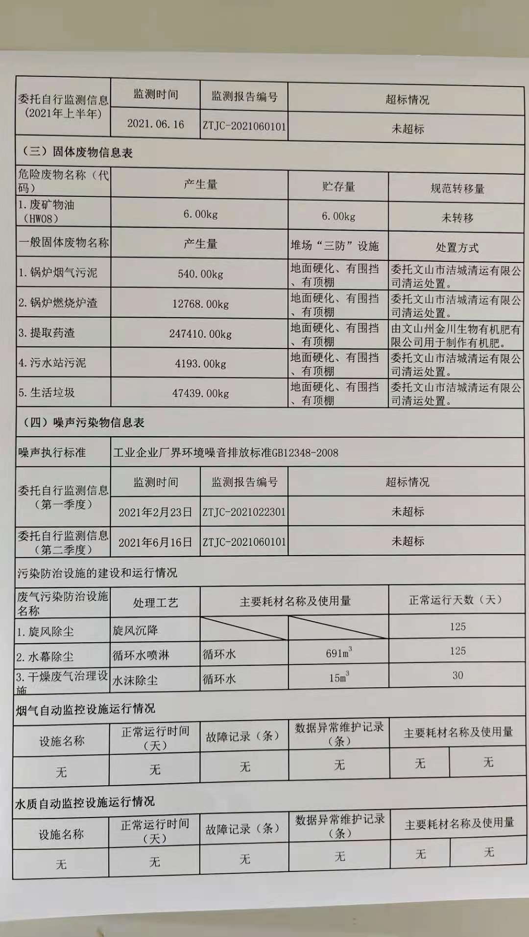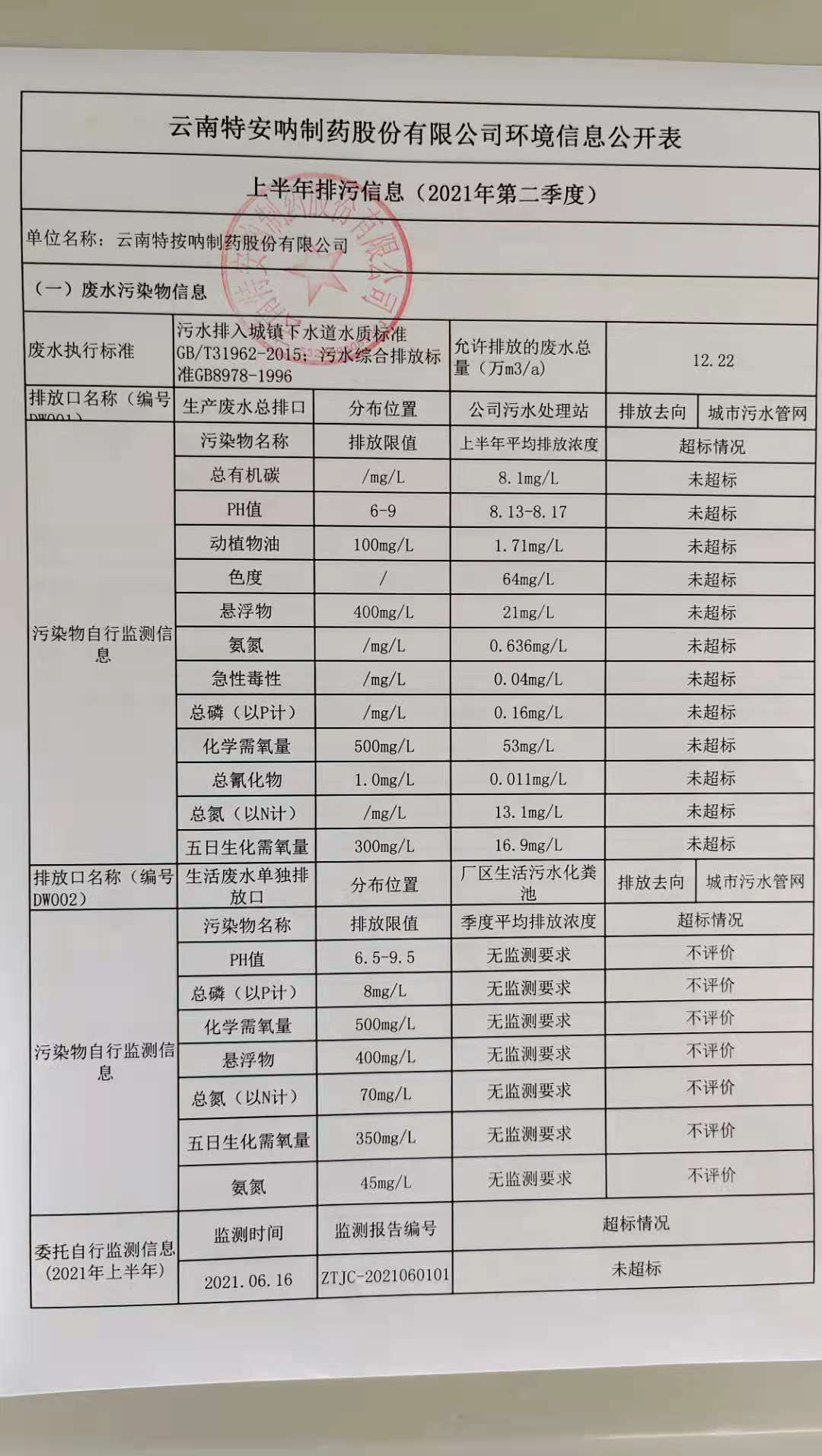 云南特安吶制藥股份有限公司2021年度環(huán)境信息公開。