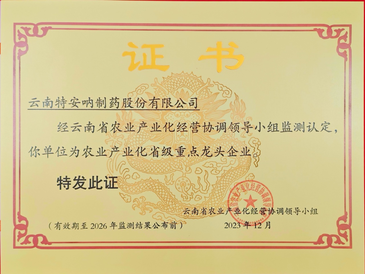 公司獲農(nóng)業(yè)產(chǎn)業(yè)化省級重點龍頭企業(yè)