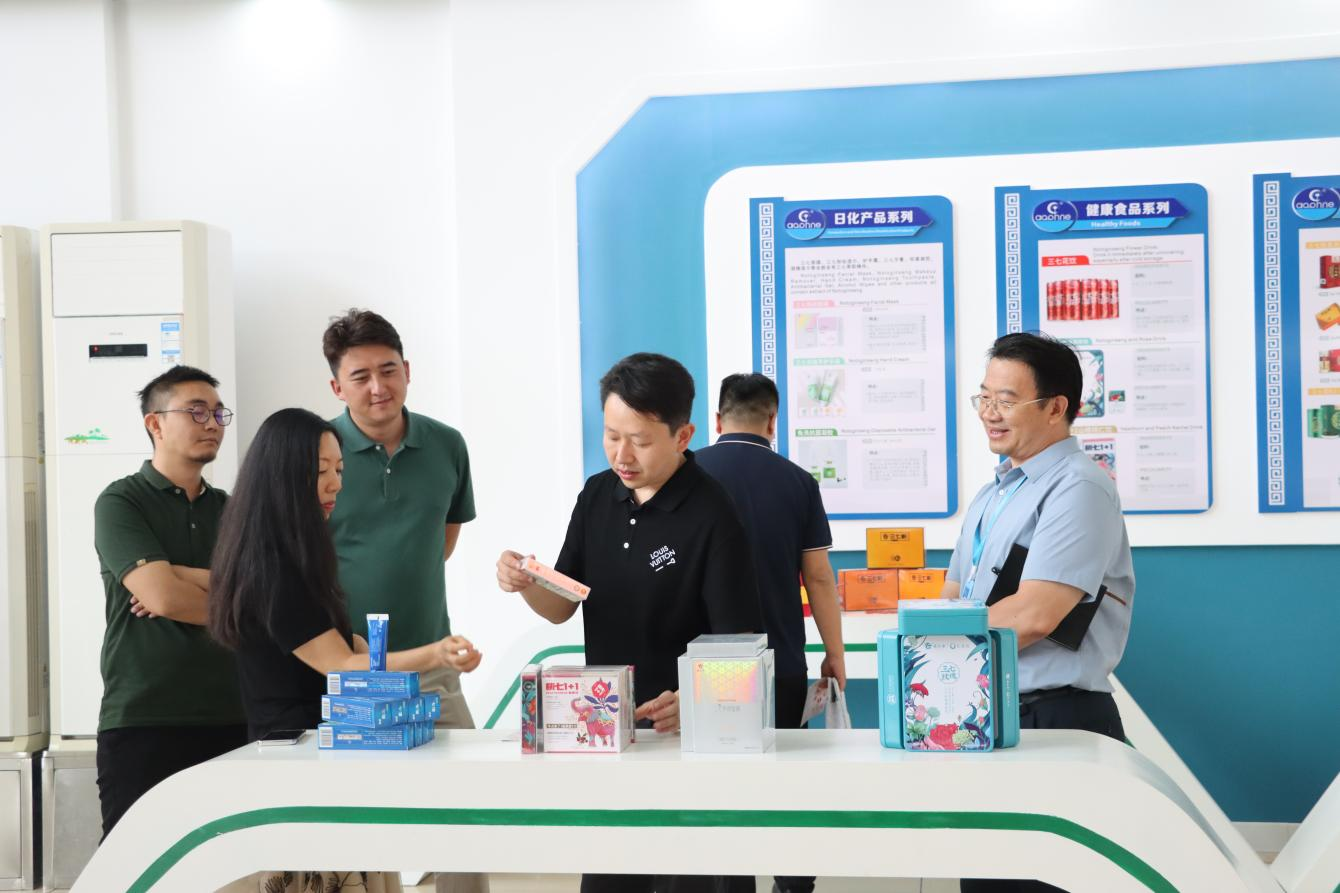 文智弘一行參觀了公司形象展廳,觀看了宣傳片《蝶變》,聽取了公司發(fā)展戰(zhàn)略、企業(yè)文化、黨建工作、產(chǎn)品拓展等方面情況介紹。文智弘表示,特安吶公司在三七產(chǎn)業(yè)深耕多年,在三七總皂苷提取、藥品批文和藥品生產(chǎn)、三七特色藥品、產(chǎn)品研發(fā)等方面有著深厚積累。希望未來能夠與特安吶公司緊密聯(lián)系,在中藥材GAP種植共建共享、中藥材貿易、藥品市場推廣、黨建共建等方面加強交流合作,共同推動三七產(chǎn)業(yè)的發(fā)展。