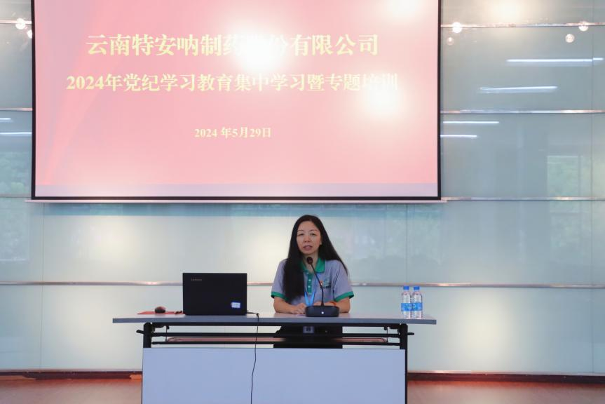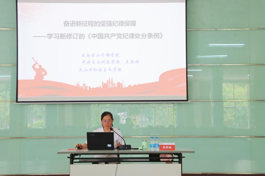 為深入貫徹習(xí)近平總書記關(guān)于黨紀(jì)學(xué)習(xí)教育的重要講話和重要指示精神,切實(shí)強(qiáng)化“領(lǐng)頭雁”隊(duì)伍黨紀(jì)意識(shí),帶動(dòng)全體黨員干部始終做到忠誠(chéng)干凈擔(dān)當(dāng),5月29日,特安吶公司黨支部開展黨紀(jì)學(xué)習(xí)教育集中學(xué)習(xí)暨專題培訓(xùn),邀請(qǐng)文山州委黨校哲學(xué)教研室副教授吳艷彬?qū)π滦抻喌摹吨袊?guó)共產(chǎn)黨紀(jì)律處分條例》進(jìn)行講授。
