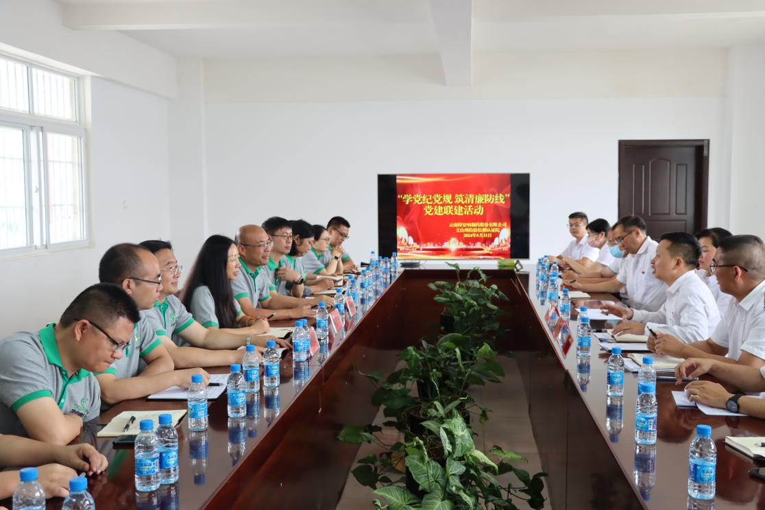為進一步增強黨員紀律意識,筑牢思想防線,同時加強與三七產(chǎn)業(yè)鏈上有關(guān)單位的合作交流,5月31日特安吶公司與文山州檢驗檢測認證院開展以“ 學(xué)黨紀黨規(guī) 筑清廉防線”為主題的黨建聯(lián)建活動。文山州檢驗檢測認證院黨組書記、院長韋明主持活動,特安吶公司黨支部書記、副董事長、常務(wù)副總經(jīng)理鄒慧寧,總經(jīng)理劉加強參加活動并座談。