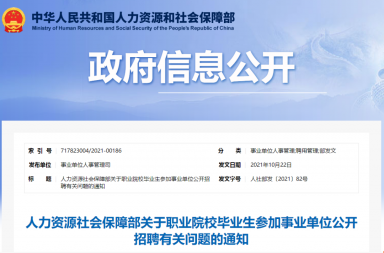 近日,人力資源社會(huì)保障部印發(fā)《關(guān)于職業(yè)院校畢業(yè)生參加事業(yè)單位公開(kāi)招聘有關(guān)問(wèn)題的通知》(以下...