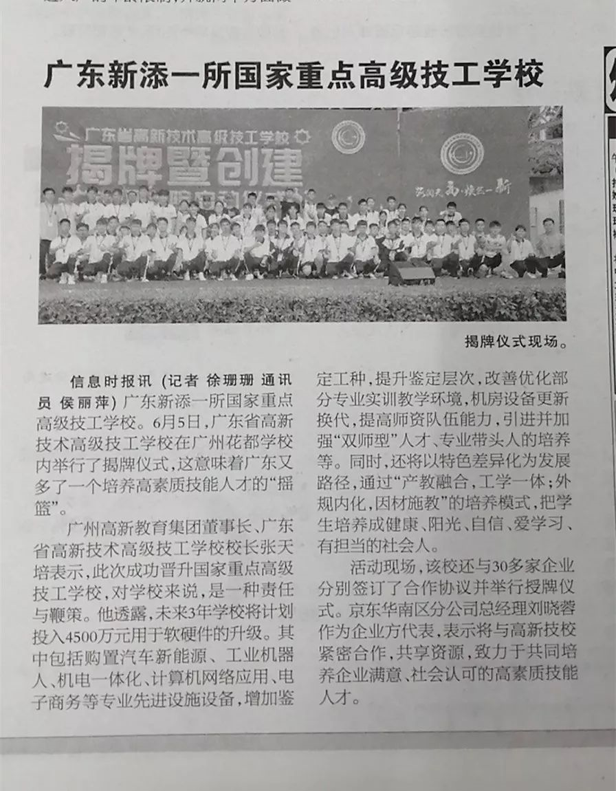 昨天 6月5日,廣東省高新技術(shù)高級技工學(xué)校舉行升高揭牌儀式(戳這里,精彩回顧),廣東省人社廳領(lǐng)導(dǎo)、評估專家、兄弟院校、校企代表及高新技校近千名師生共同參與、共同見證了廣東省又一所培養(yǎng)高素質(zhì)技能人才的“搖籃”的誕生。