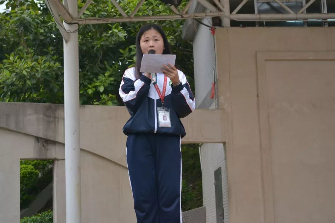 接著是大會第二項(xiàng),背誦系訓(xùn)以及系部口號,上周說明因?yàn)榭谔栔械?ldquo;愛家愛校愛父母”中“愛家”和“愛父母”重復(fù),所以改成了“愛家”改成了“愛國”。