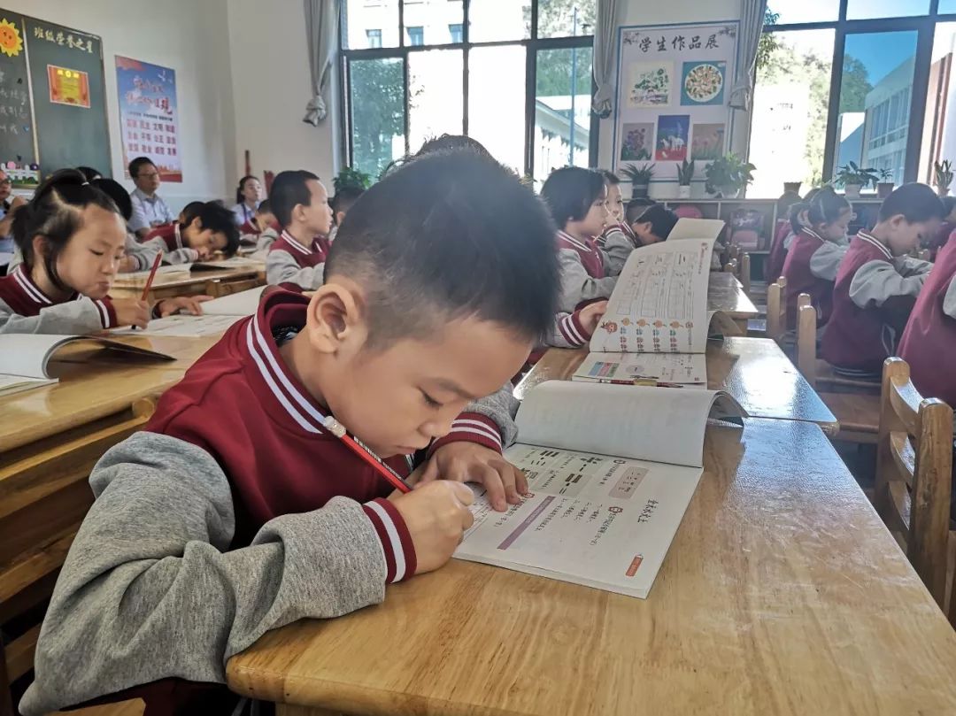 在朗朗的書聲中,丁惠臻老師走進(jìn)了一(2)班的教室。丁老師用“金木水火土”作為小組名稱,既鞏固了舊知識,又調(diào)動了孩子的積極性。通過講解象形文字,孩子們對文字產(chǎn)生敬畏之心。讓生字開花又豐富了學(xué)生的詞匯量。運(yùn)用田字格“九點(diǎn)式”書寫方法,指導(dǎo)學(xué)生規(guī)范書寫。