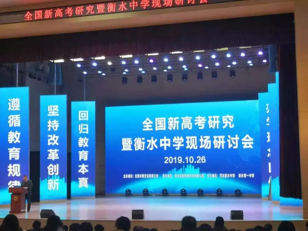 最后,我們聆聽了河北衡水中學(xué)副校長康新江有關(guān)《衡水新高考實施策略的報告》,他在報告中提出,新課改是挑戰(zhàn)與機遇并存的契機,對衡水中學(xué)來說是學(xué)校發(fā)展良好的動力,他認(rèn)為,衡中的優(yōu)勢在先進(jìn)的辦學(xué)理念,嚴(yán)格的管理制度。他深信衡水學(xué)子在“大五觀”的引領(lǐng)下,定能在2020年的高考中勇奪桂冠,再創(chuàng)佳績。