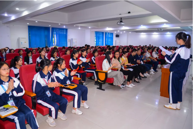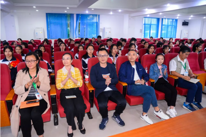 谷希歐公司董事長袁應(yīng)權(quán)、總經(jīng)理陳彥榮、業(yè)務(wù)骨干雷麗紅,高新技校校長助理孫建華、教務(wù)處處長田春元、經(jīng)貿(mào)系主任向莎莎、商務(wù)外語專業(yè)負(fù)責(zé)人劉敏、17商務(wù)外語高技班主任陳靜儀、商務(wù)外語組全體教師出席了儀式,17商務(wù)外語高技班全體同學(xué)來到了現(xiàn)場。17商英高技班諸敏同學(xué)擔(dān)任了本次儀式的主持。
