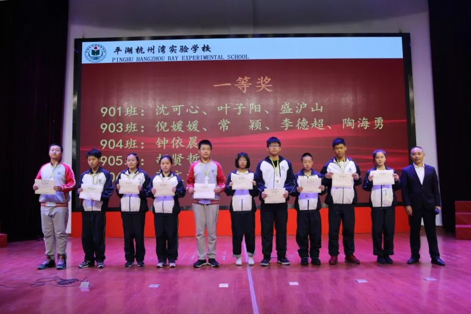 除了九年級(jí)的科學(xué)競賽外,本周還在初中部進(jìn)行了《我與平湖杭州灣實(shí)驗(yàn)學(xué)校的故事》作文競賽,會(huì)上吳正龍主任宣讀了初中部三個(gè)年級(jí)或一、二、三等獎(jiǎng)的學(xué)生名單并對獲獎(jiǎng)學(xué)生進(jìn)行頒獎(jiǎng)。