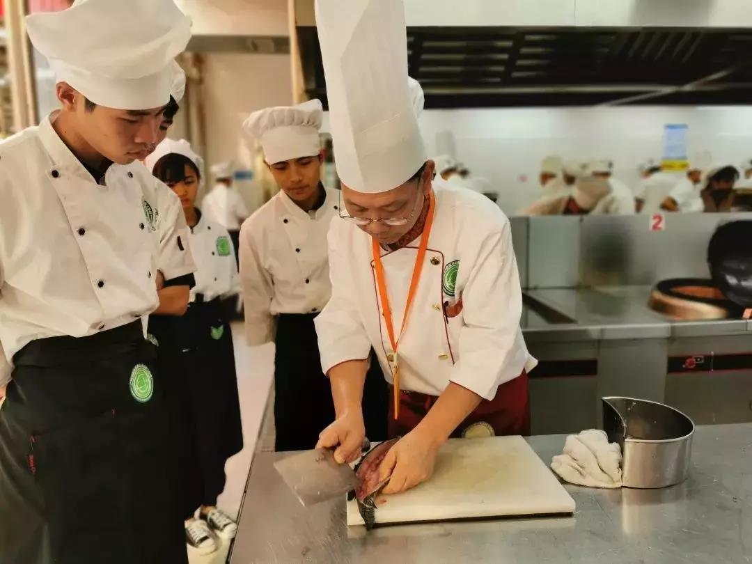 吳曉藍(lán)在教學(xué)上對(duì)學(xué)生要求嚴(yán)格,他從原材料的選擇、刀工、火候、擺盤都要求學(xué)生做到精益求精。學(xué)生們很樂(lè)意跟隨這位大師傅學(xué)廚藝,覺得能學(xué)到真本領(lǐng)。