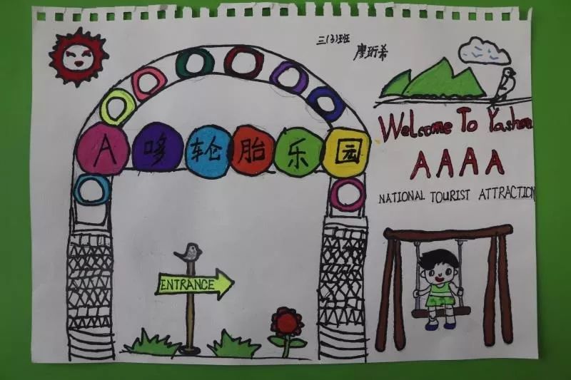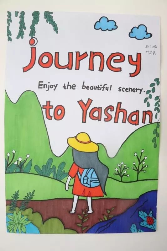同樣的,為了準(zhǔn)備研學(xué)課程,孩子們還用英語認(rèn)真的做了丫山海報(bào)。讓我們來看看大余衡實(shí)三年級(jí)孩子們的作品吧!