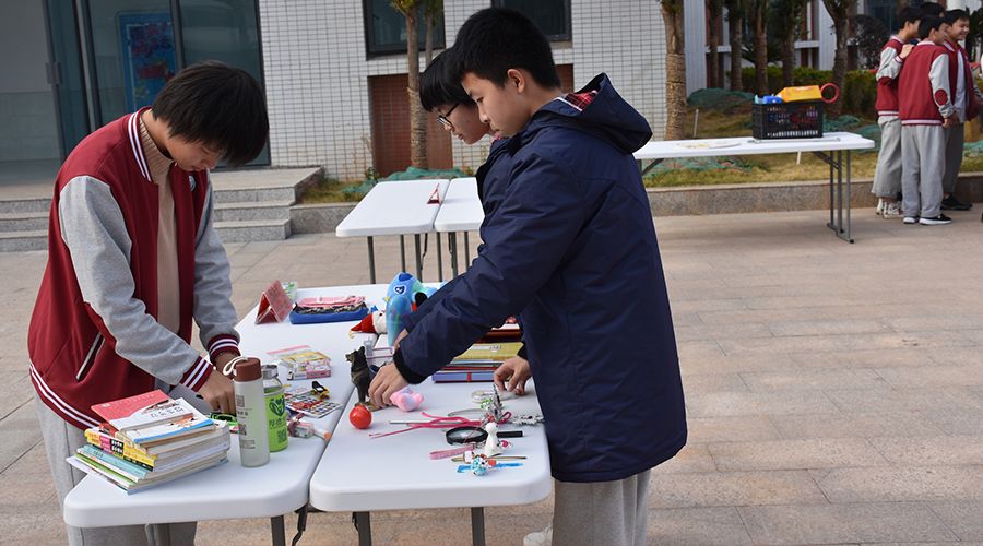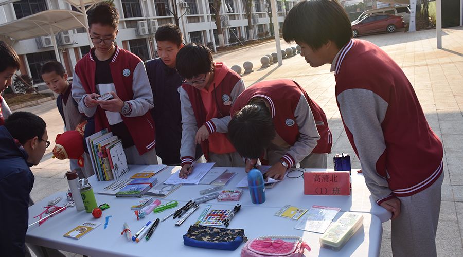 1月5日下午3:30,學(xué)部各班級同學(xué)就迅速行動起來,將精心準(zhǔn)備好的義賣物品、橫幅、銷售裝備等拿到攤位。各班級快速有序的將自家“超市”布置完畢,校園瞬間被點(diǎn)燃,集市人山人海。每家“超市”都別出心裁的通過標(biāo)語、口號展示自家店鋪的特色。