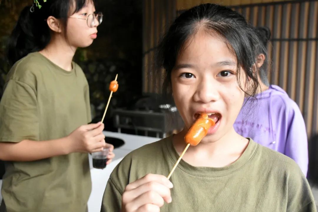 一串串肉被擺在烤架上,醬料被調(diào)配著,歡笑大鬧間,丫山下的我們是如此可愛,“大廚”翻著烤肉,平日不愛勞動的“大哥”這時也變得勤奮可靠,一直為大家烤食物,是“大廚”中的中流砥柱,老師們也檫拳磨掌,在燒烤一線奮戰(zhàn)。