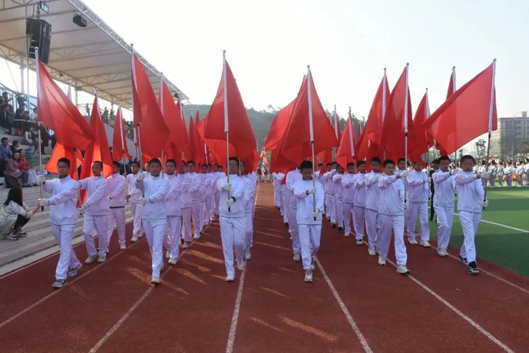 各班級(jí)代表隊(duì)也絲毫不輸陣!他們踏著運(yùn)動(dòng)員進(jìn)行曲,賣著鏗鏘有力的步伐,以飽滿的精神狀態(tài),列隊(duì)走過(guò)主席臺(tái)。