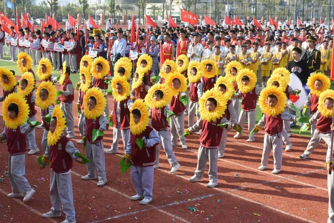 金燦燦的花球如同太陽(yáng)的光輝灑滿操場(chǎng),