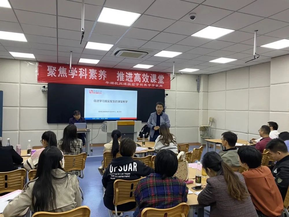 中午,我們有幸請到嘉興市學(xué)科帶頭人、嘉興市南湖區(qū)教研員朱文平專家為我們做了題為《促進(jìn)學(xué)習(xí)真實(shí)發(fā)生的課堂教學(xué)》微型報(bào)告。朱老師給我們指出,教學(xué)改革的核心是“改變教與學(xué)的關(guān)系”。“教是為了不教,教為了學(xué);少教多學(xué),變教為學(xué)”是教學(xué)改革的方向,我們應(yīng)當(dāng)基于學(xué)科特征、學(xué)習(xí)內(nèi)容特征、學(xué)生學(xué)習(xí)特征選擇合適的學(xué)教方式,使學(xué)習(xí)方式多元化,從而學(xué)習(xí)行為多樣化,學(xué)生才能夠更好地獲得知識。