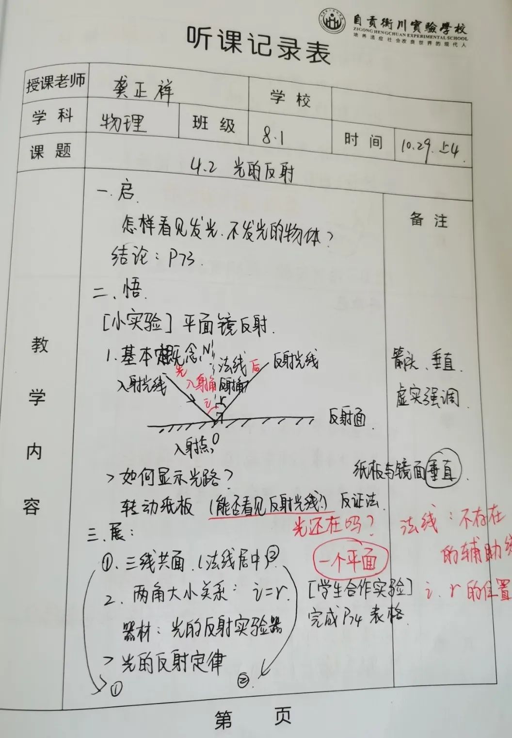 首先,聽課時(shí)不要只記錄課堂流程,更要隨時(shí)把自己所關(guān)注和思考的東西標(biāo)注出來,比如對某些概念的深入闡釋,對難點(diǎn)的具體處理方式,對學(xué)生特定反應(yīng)的應(yīng)對等。