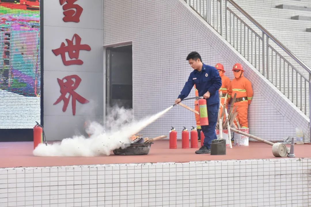 理論知識(shí)過關(guān),接下來消防志愿者團(tuán)隊(duì)就開始實(shí)際演練滅火器的使用。