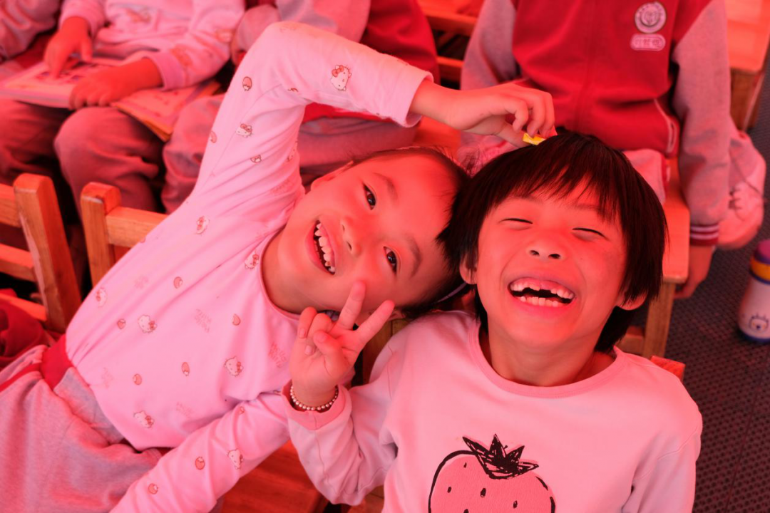 在一個(gè)又一個(gè)游戲游戲當(dāng)中,孩子們好像對(duì)我卸下了防備,會(huì)時(shí)不時(shí)來拉拉我的手,抱抱我,甚至是坐到我的腿上。這也令我欣喜若狂,孩子的信任對(duì)我來說仿佛是天大的禮物。就這樣,我和孩子們的心,一點(diǎn)點(diǎn)地靠在了一起。