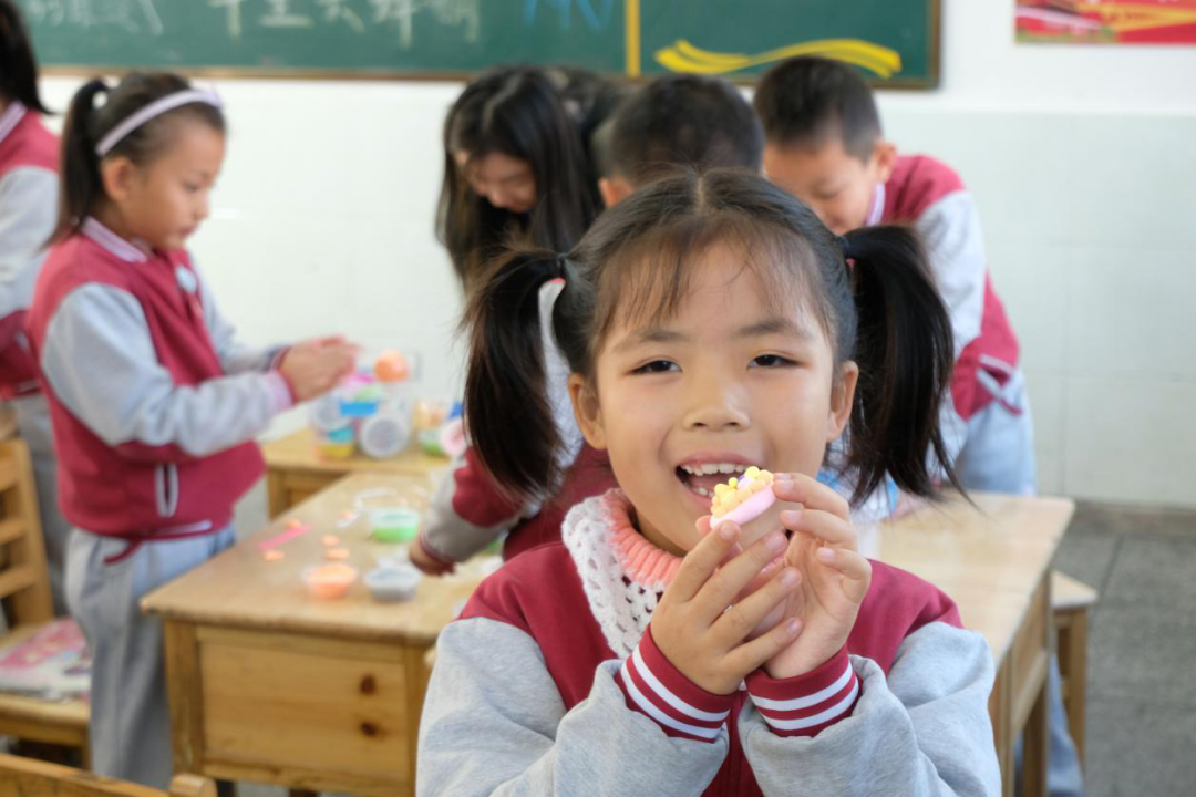 在兩年的支教時(shí)間里,面對(duì)條件的限制,我想盡辦法讓孩子們的生活更加豐富多彩。美術(shù)課上,帶著孩子們一起裝扮教室;體育課上,尋找有趣的活動(dòng)和學(xué)生一起玩耍;大課間時(shí),和孩子們一起跳舞;到了元旦,我買來蛋糕和孩子們一起慶祝;遇到兒童節(jié),我和孩子們一起排練節(jié)目......我努力將儀式感帶給孩子,并在有限的時(shí)空里,尋找更多的樂趣。