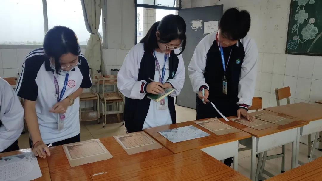 本次初賽除了語文課組老師作為評委外,還特邀了上一屆獲硬筆書法比賽第一名的韋家麗(2班)、張寶兒(4班)、牟星宇(2班)、何子嫻(3班)、于珊珊(2班)、劉語晴(4班)、王思淇(3班)、楊欣冉(3班)等8位學(xué)生作為小評委。初賽以班級為單位進(jìn)行,每位同學(xué)都有資格參賽,賽后經(jīng)評委選出入圍選手參與決賽。